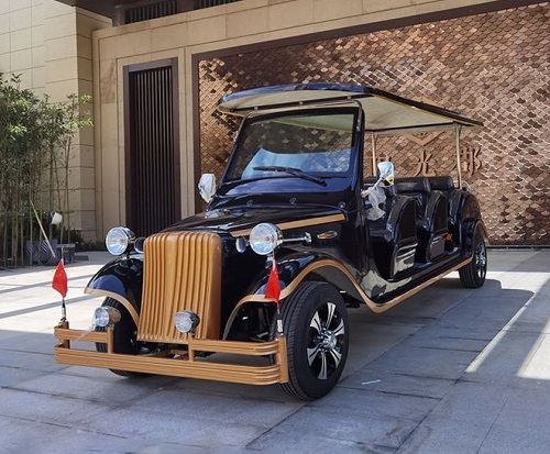 电气系统:动力系统:锂电池是电动老爷车的核心动力源,常见的配置有6V-170AH的电池组,通过串联形成35V或72V的电压。这种高容量电池能够提供较长的续航里程和良好的动力性能。控制系统及辅助设备:包括遥控器、加速器等控制设备,以及电脑智能化充电机,用于提高电池的使用效率和延长使用寿命。底盘:后桥:无级变速后桥是电动老爷车常用的底盘配置,采用进口技术制造,确保了车辆在行驶过程中的稳定性和舒适性。悬挂系统:高质量的悬挂系统可以减少路面不平带来的震动,提升乘坐舒适度。车身:尺寸与设计:车身尺寸通常根据座位数量和用途定制,如8座电动老爷车的车身长度为5050毫米。车身设计复古,既符合老爷车的传统美学,又融入现代电动车的元素。